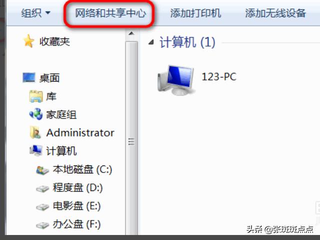 1、打开电脑的网络,点击页面上方的网络和共享中心。