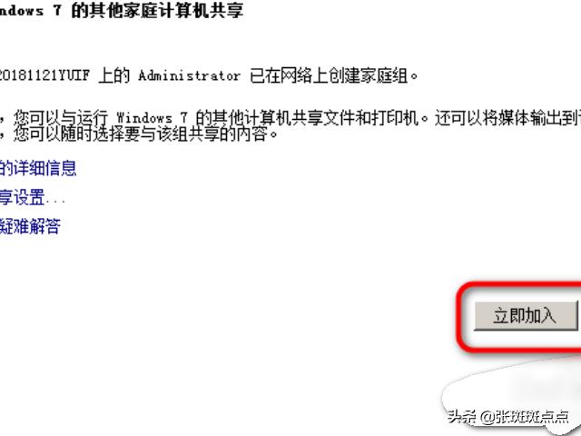 5、打开需要加入家庭组的另一台电脑,点击网络和共享中心(第一、第二的操作步骤),再点击家庭组后面的可加入。页面跳转,点击立即加入。