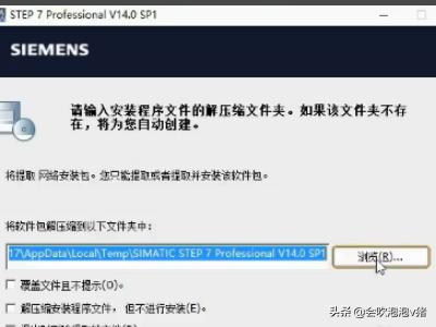4、出现解压文件保存目录,我们可以选择浏览,将文件解压在一个大小不少于10G的硬盘文件中。如下图我选择提前建好的目录。