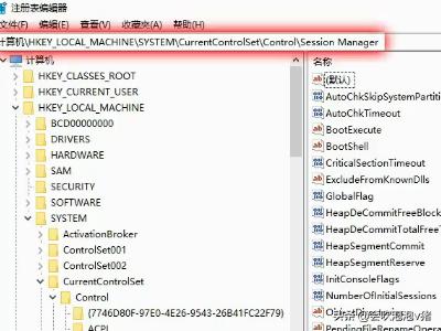 8、打开下图红框中的路径“计算机。\HKEY_LOCAL_MACHINE\SYSTEM\CurrentControlSet\Control\Session Manager”