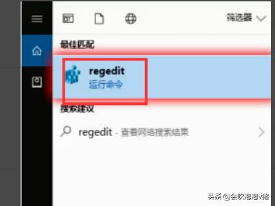 7、搜索栏里输入“regedit”打开注册表。