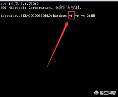 4、打开CMD窗口后,输入“shutdown -f -s -t 3600”这里添加的一个“-f”命令就是强制关闭所有正在打开的程序命令。