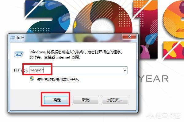 2、打开运行界面输入“regedit”,点击确定打开注册表编辑器,如下图。