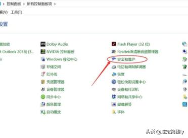 2、在打开的控制面板中,打开“安全和维护”,如下图所示: