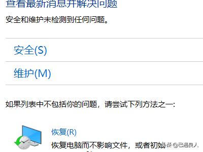 2.进入控制面板界面之后,我们可以找到“安全和维护”选项。双击打开,进入安全与维护界面。如图所示