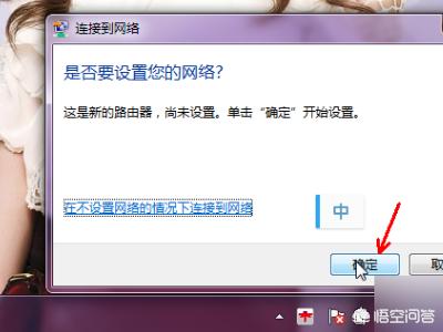 3、win7的系统会弹出询问是否设置路由器的提示,这个和路由器的引导有一部分是重合的,点击确定。