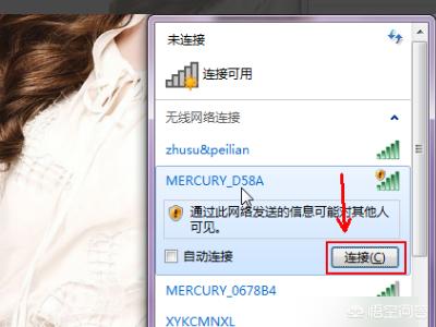 2、然后将另一个路由器接通电源,打开电脑和这个路由器连接上,找到路由器的信号,此时没有wifi密码,点击链接。
