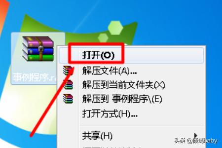 1.右击已损坏的压缩文件,从弹出的菜单中选择“打开”项。