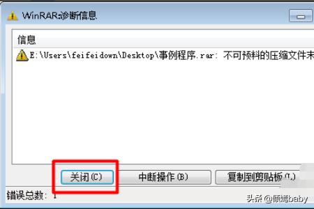 2.当弹出“错误”对话框时,点击“关闭”按钮。