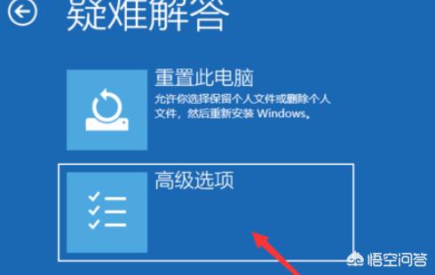 1、首先长按电源键强制关机并重启操作三次以上,这个时候就会自动进入系统菜单界面如下图,点击“疑难解答”。
