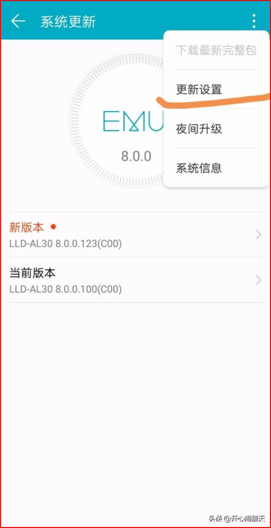 4、打开这三个小点点之后就会发现有更新设置。如下图所示。