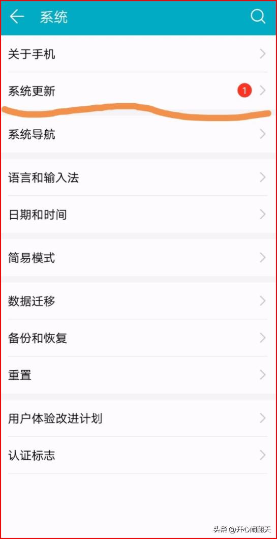 2、打开设置之后,咱们点击系统更新这一项。如下图所示。