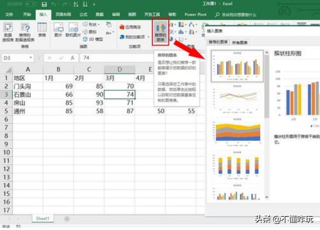 Excel中,还有一个非常好用的功能,那便是,推荐图表功能。