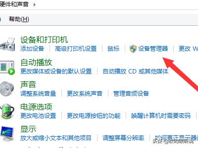 3、在“设备和打印机”项目里,打开“设备管理器”。