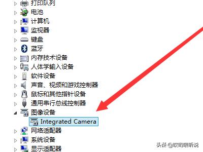 4、在“设备管理器”中找到“图像设备”这项目,点击打开可以看到“Integrated Camera”。