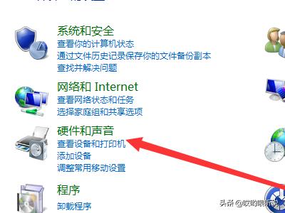 2、打开“硬件和声音”。