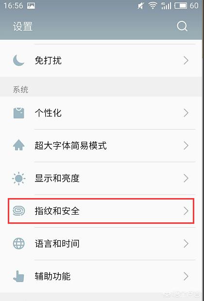 2、在设置里点击指纹和安全。
