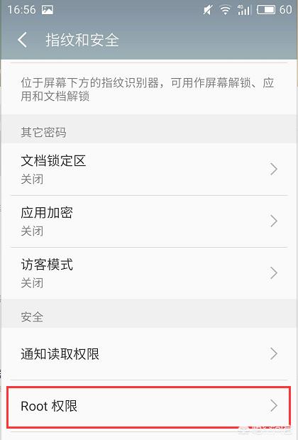 3、指纹和安全拉到最下方可以看到Root权限。