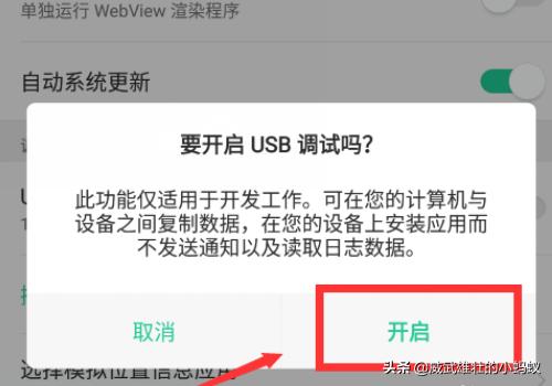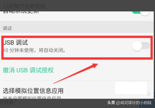 5、在进入的“开发者”选项中,选择“USB调试”开关。