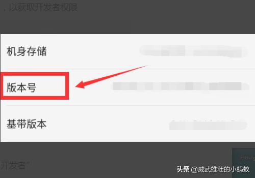 3、在对“版本号”进行鼠标多次点击,以获取开发者权限。