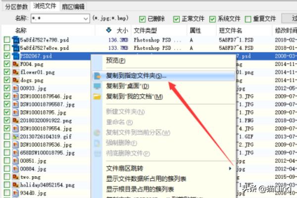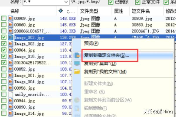 2、加载完成后,如果需要的数据可以被列出来,直接将文件复制到其他分区即可:选中文件,然后右击鼠标并选择“复制到指定文件夹”选项。