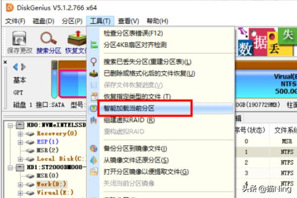 1、在软件中找到无法访问的分区,用鼠标右键点击该分区,并选择“智能加载当前分区”选项。