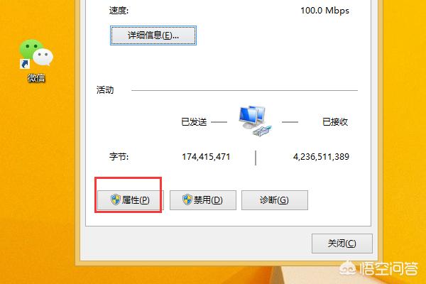 3、页面弹出以外网对话框,点击属性按钮进入。
