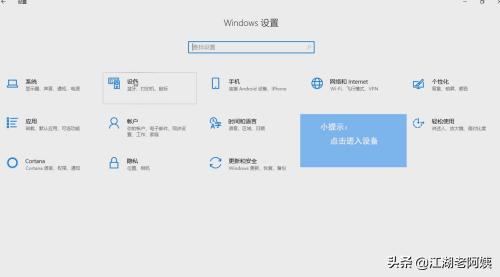 1.打开菜单里的“设置”,点击进入“设备”