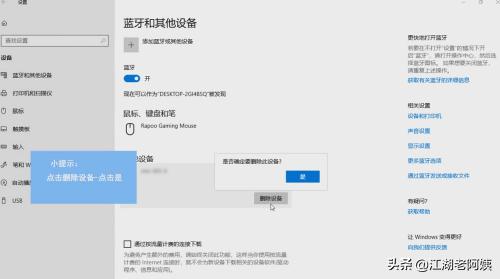 2.在面板中可以看到自己的u盘,然后单击自己的u盘,点击“删除设备”,点击“是”