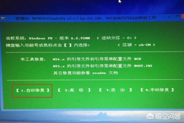 6、接着进入到修复程序的界面,一般选择自动修复选项即可,这里直接按选项前面的数字,或者鼠标点击都是可以的。
