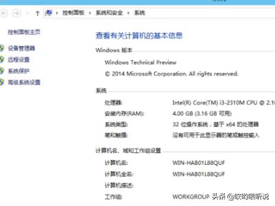 2、在打开的系统属性的窗口,点击左上角的“控制面板”窗口。如下图。要快速打开win10系统“控制面板”,还可以在开始菜单的搜索框中输入”contrl panel“点击搜索即可。