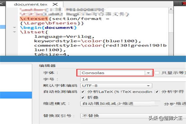 5.在编辑器选项卡下,修改字体和字号。如图是Consolas字体,14号的效果。