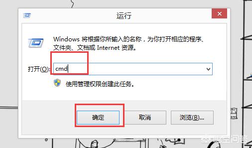 2、弹出窗口,输入“cmd”然后点击“确定”。