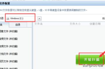 4、跳出弹框进入360文件恢复界面,选择被删除文件所在的磁盘,点击开始扫描,如下图所示。