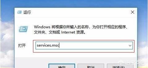 2、在弹出的运行对话框,输入services.msc命令点击确定进入。