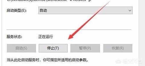 4、在弹出的User Manager服务属性对话框,点击服务状态停止按钮。