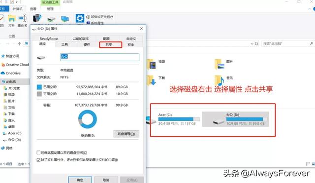 首先打开电脑磁盘目录,选中你要共享得磁盘,右击选择“属性”