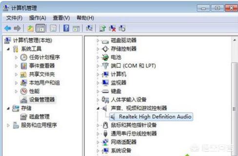 1、在桌面上,右键点击“计算机”—“设备”—“声音、视频和游戏控制器”,查看Realtek High Definition Audio是否显示正常,如果红叉或黄色感叹号,说明没有安装驱动;