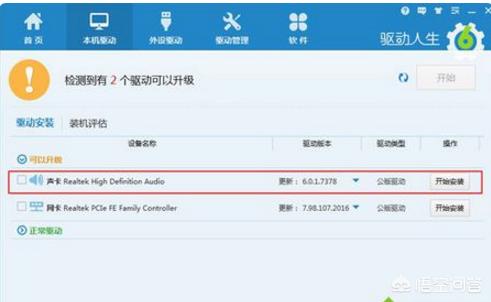 2、这时候自己下载声卡驱动安装,或者使用驱动精灵、驱动人生等工具安装最新声卡驱动。