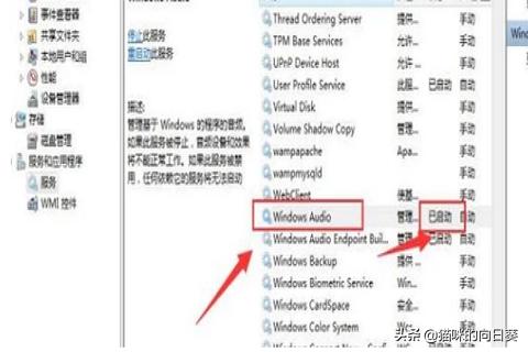 4.在右侧找到【Windows audio】,并且启动它即可。