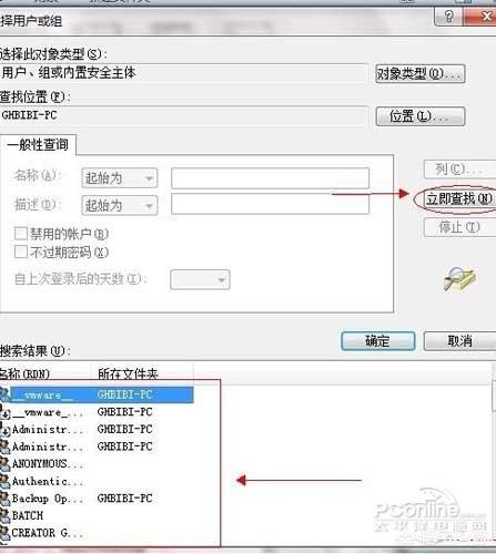 点击“立即查找”,下面的位置就会列出用户列表,找到everyone 用户,双击它。