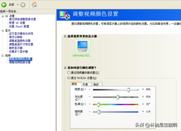 3、调整视频颜色设置,选择需要变更的显示器,进行颜色调整。设置完成后,打开cf一键烟雾头,进入游戏-游戏设置-省心设置-自动设置-把三角形拉到右边,色彩深度-低-贴图质量-16-天气效果-无-画面亮度65-80-其它弹痕什么的随便设置。