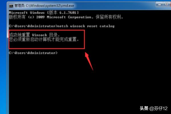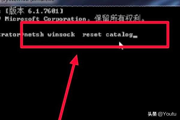 5、然后可以打开命令提示符窗口,输入 netsh winsock reset catalog命令,点击回车按键。