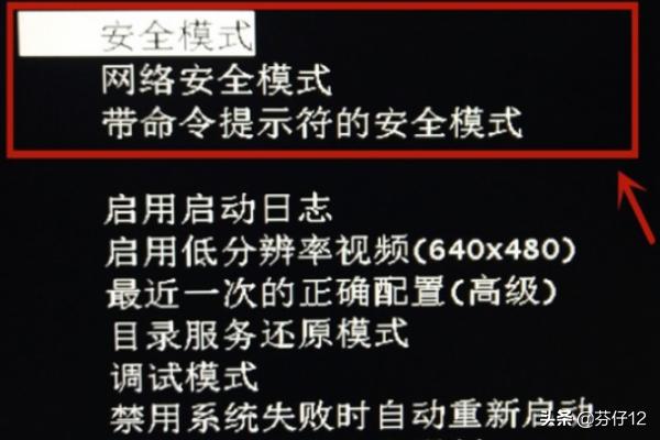 2、然后在进入的界面,选择一个安全模式进入,选择没有网络的安全模式最好。