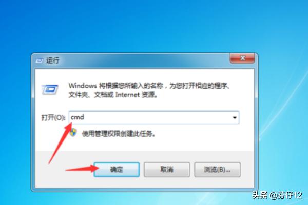 2、然后,我们在运行的空白框内输入cmd。千万别输错了哦,打错字母无法进行后面的操作。