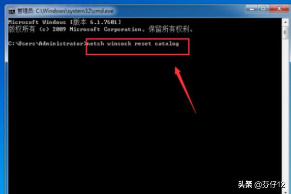 3、接着,系统会自动弹出来黑色页面哦。我们在黑色页面里输入netsh winsock reset catalog。